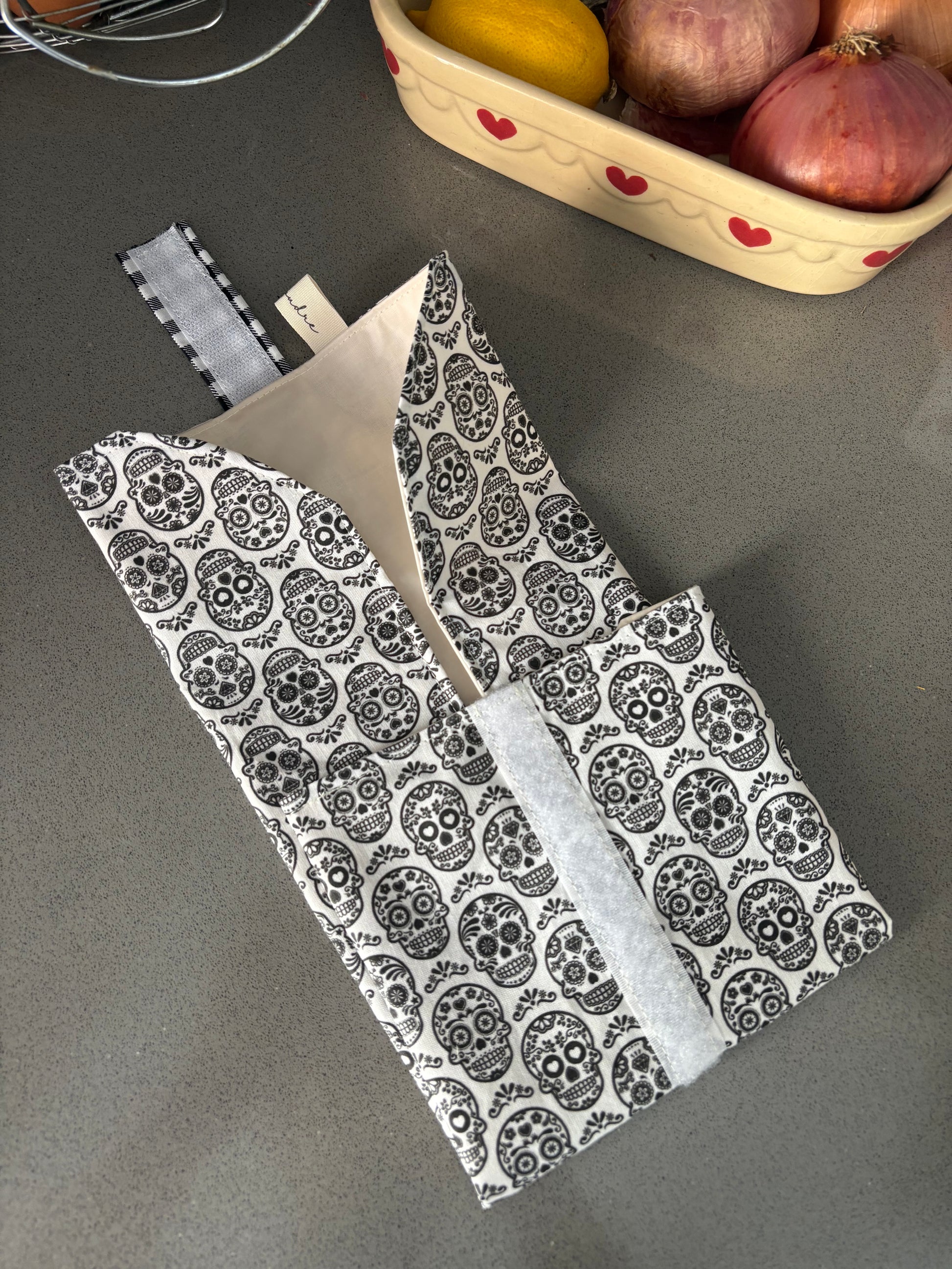 Práctico, ligero y sostenible 🌱 Este envoltorio para alimentos está hecho a mano 🧵 con tela de algodón en el exterior y forro interior de plástico alimentario ♻️.