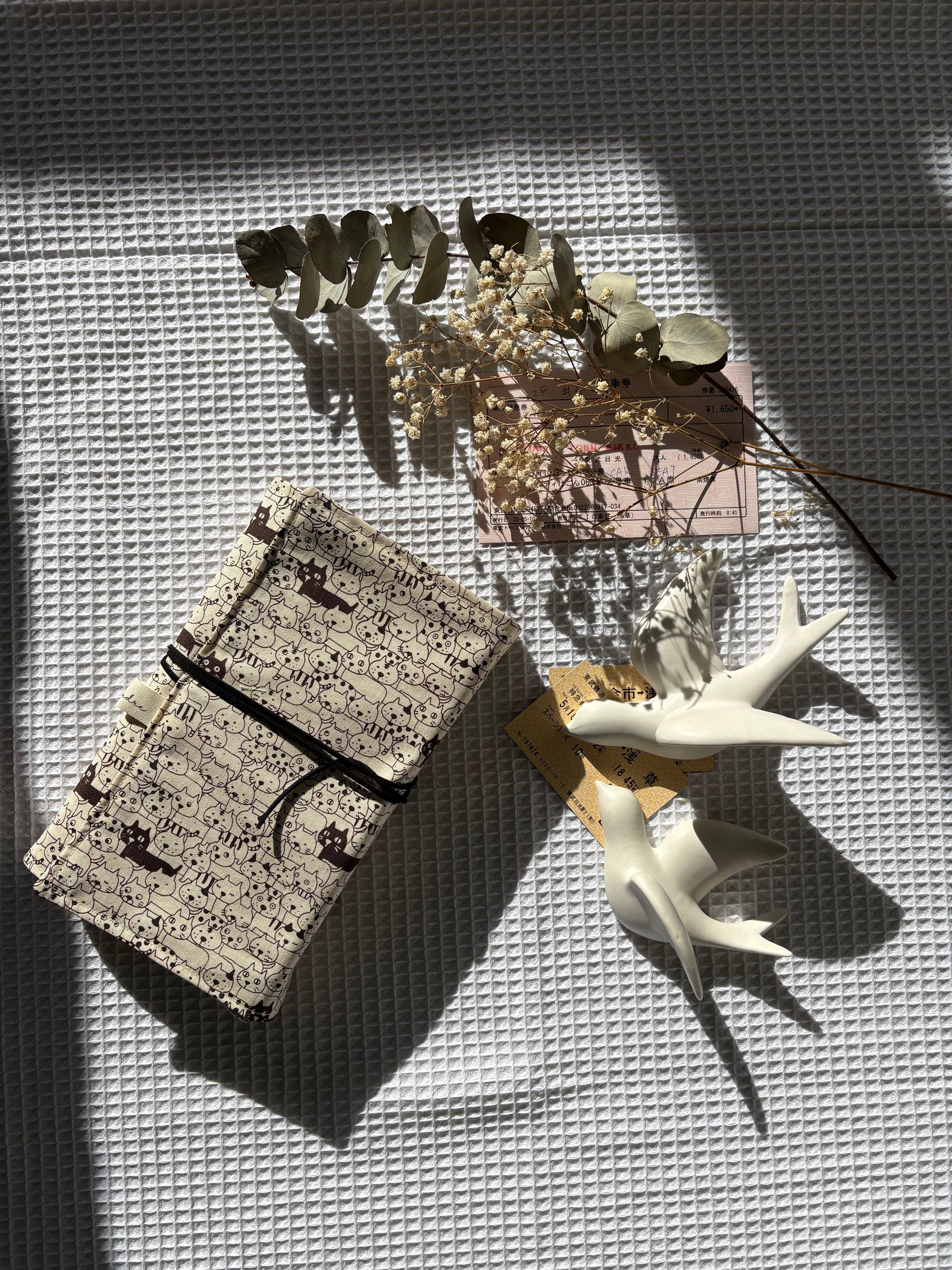Confeccionada con algodón de estampado de Gatos negro y blanco, su diseño combina funcionalidad y ternura. El toque especial: un cordón que mantiene el libro bien cerrado y le da un aire rústico y elegante.