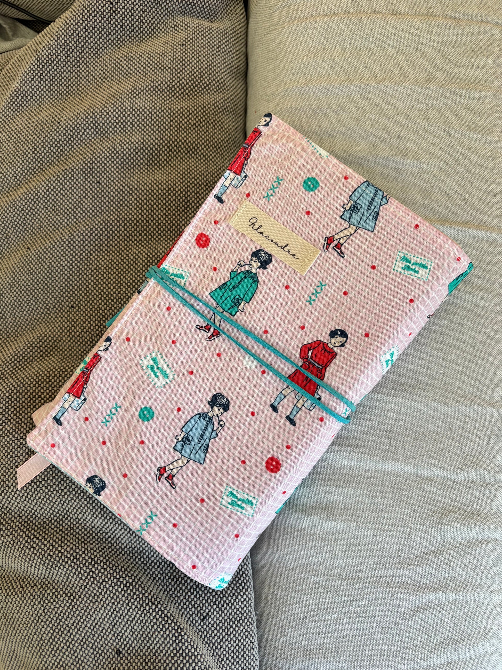 Confeccionada con algodón de estampado fabricado en Francia , su diseño combina funcionalidad y ternura. El toque especial: un cordón de pana que mantiene el libro bien cerrado y le da un aire rústico y elegante.