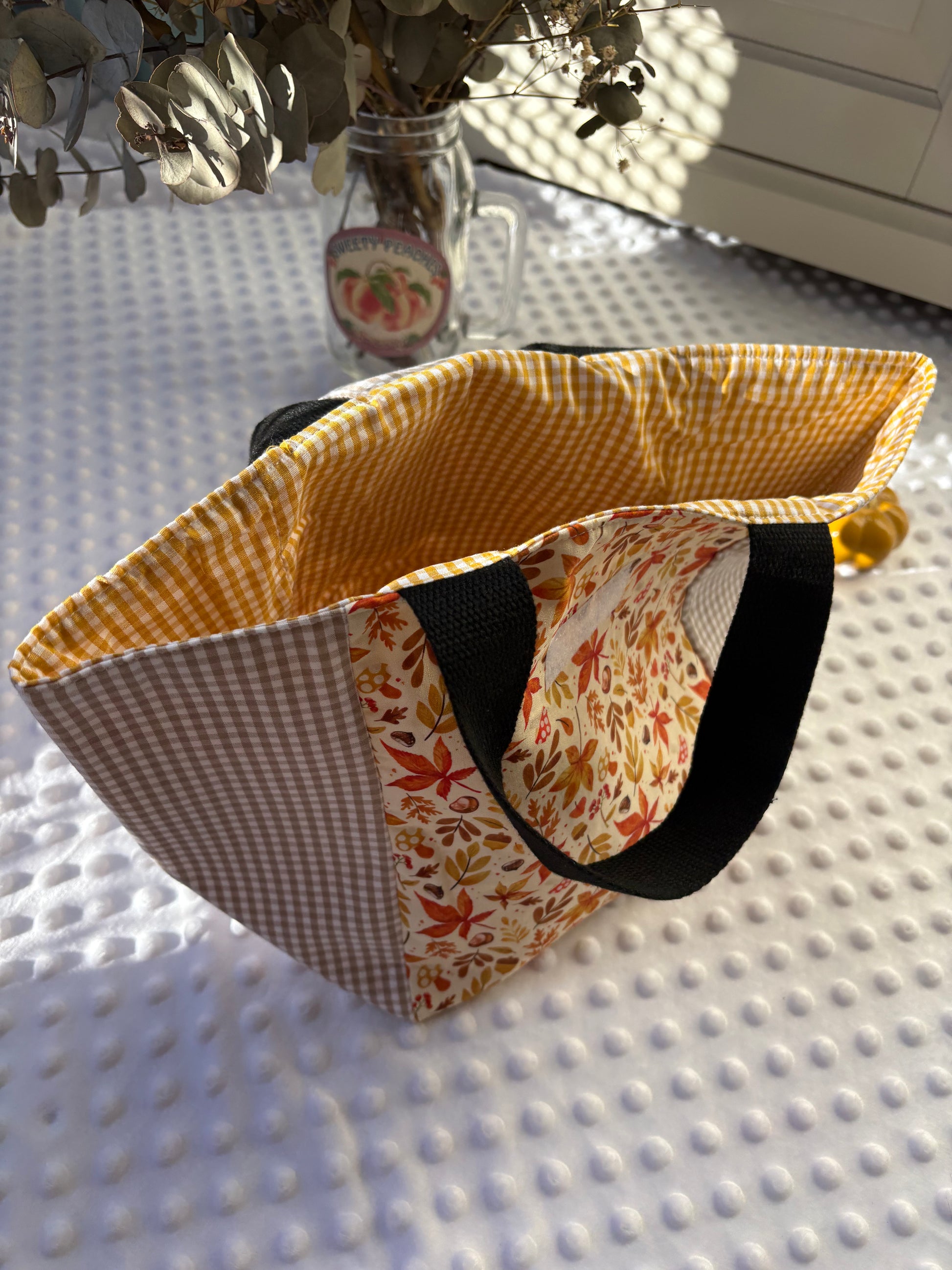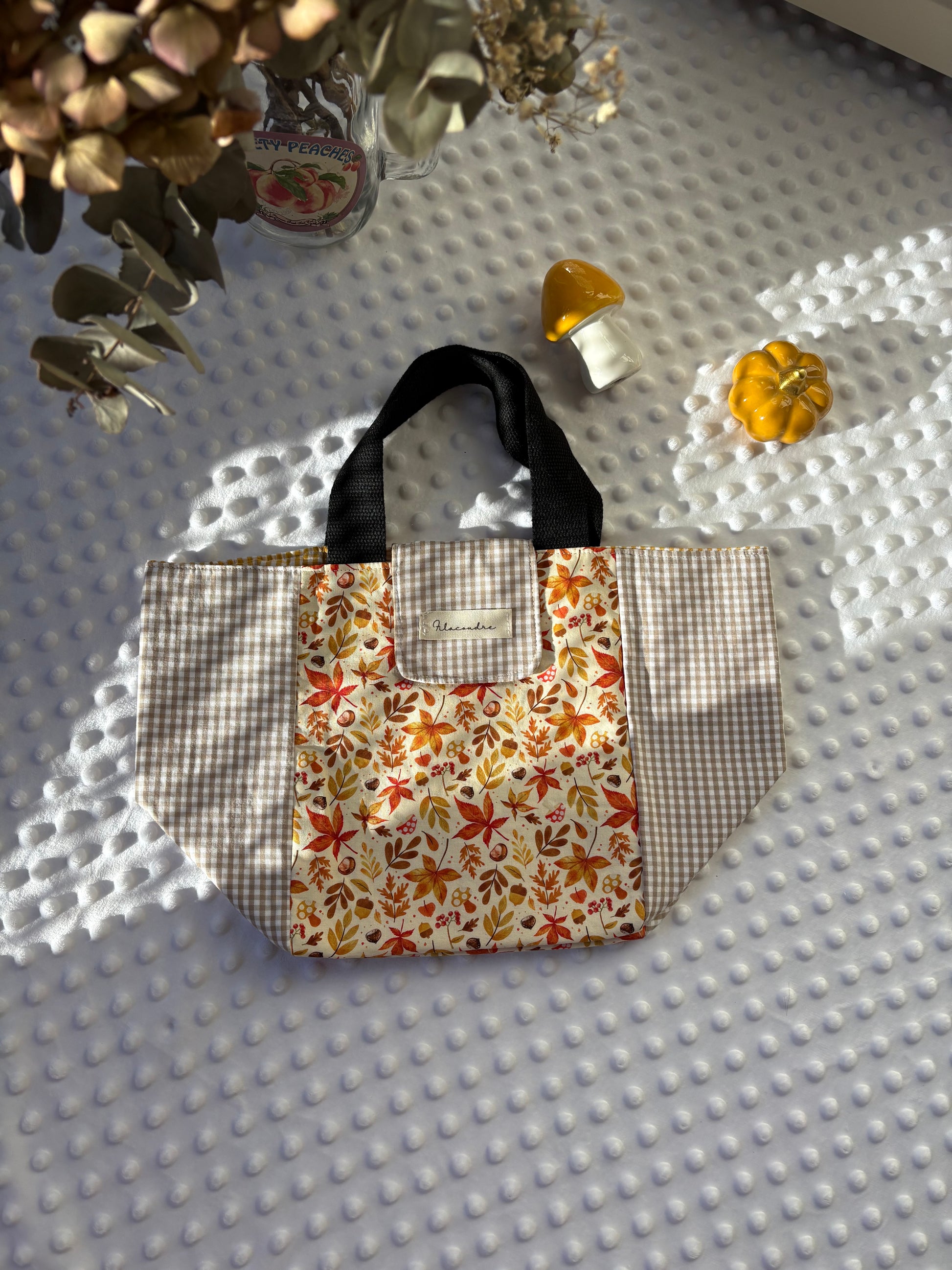 Nuestro Lunch Bag de tela de otoño, confeccionado en 100% algodón, es ideal para llevar tu tupper al trabajo. Práctico y cómodo, cuenta con un cierre de velcro para mayor seguridad y también puede usarse como bolso. ¡Explora más diseños disponibles en la tienda!