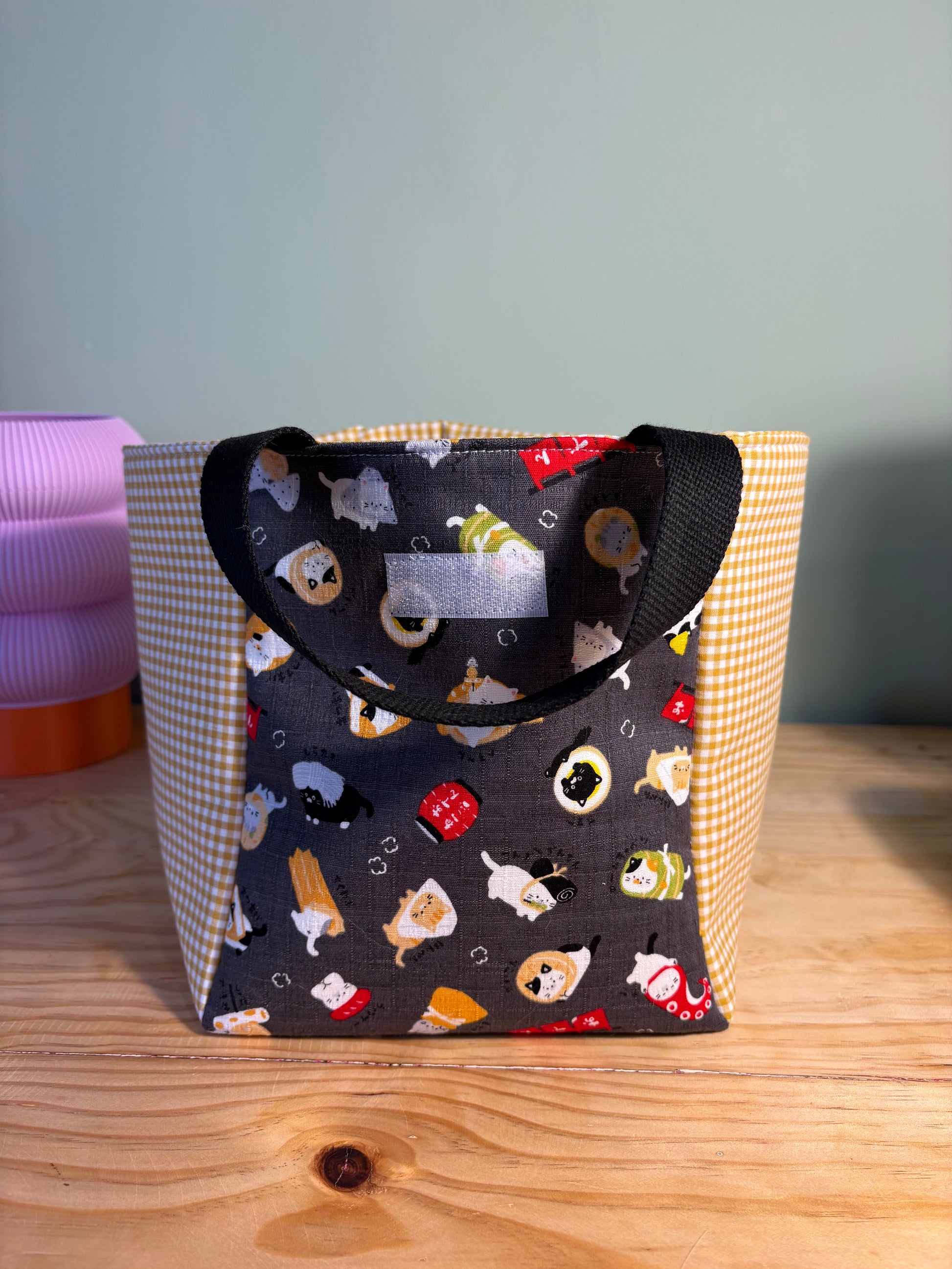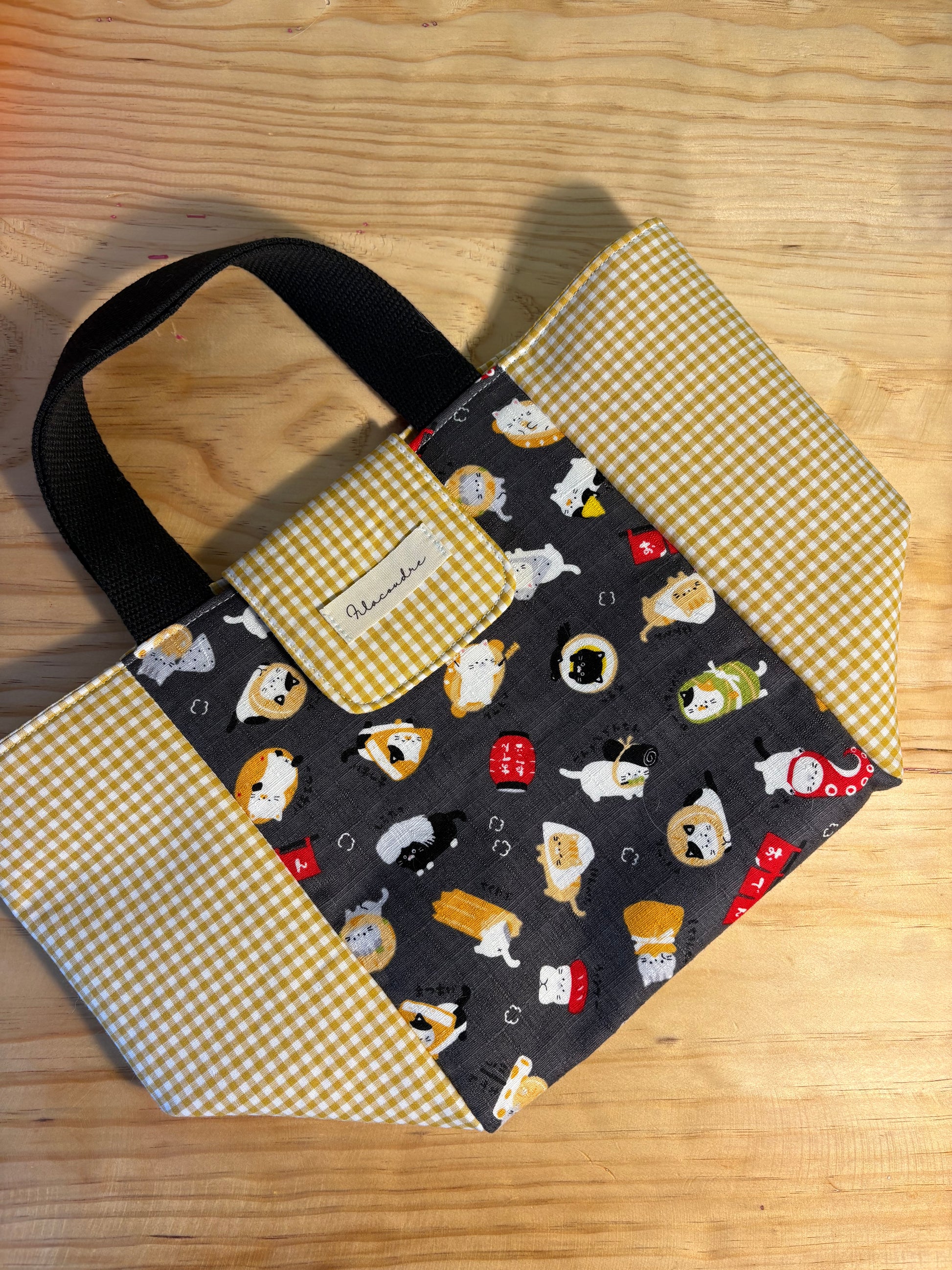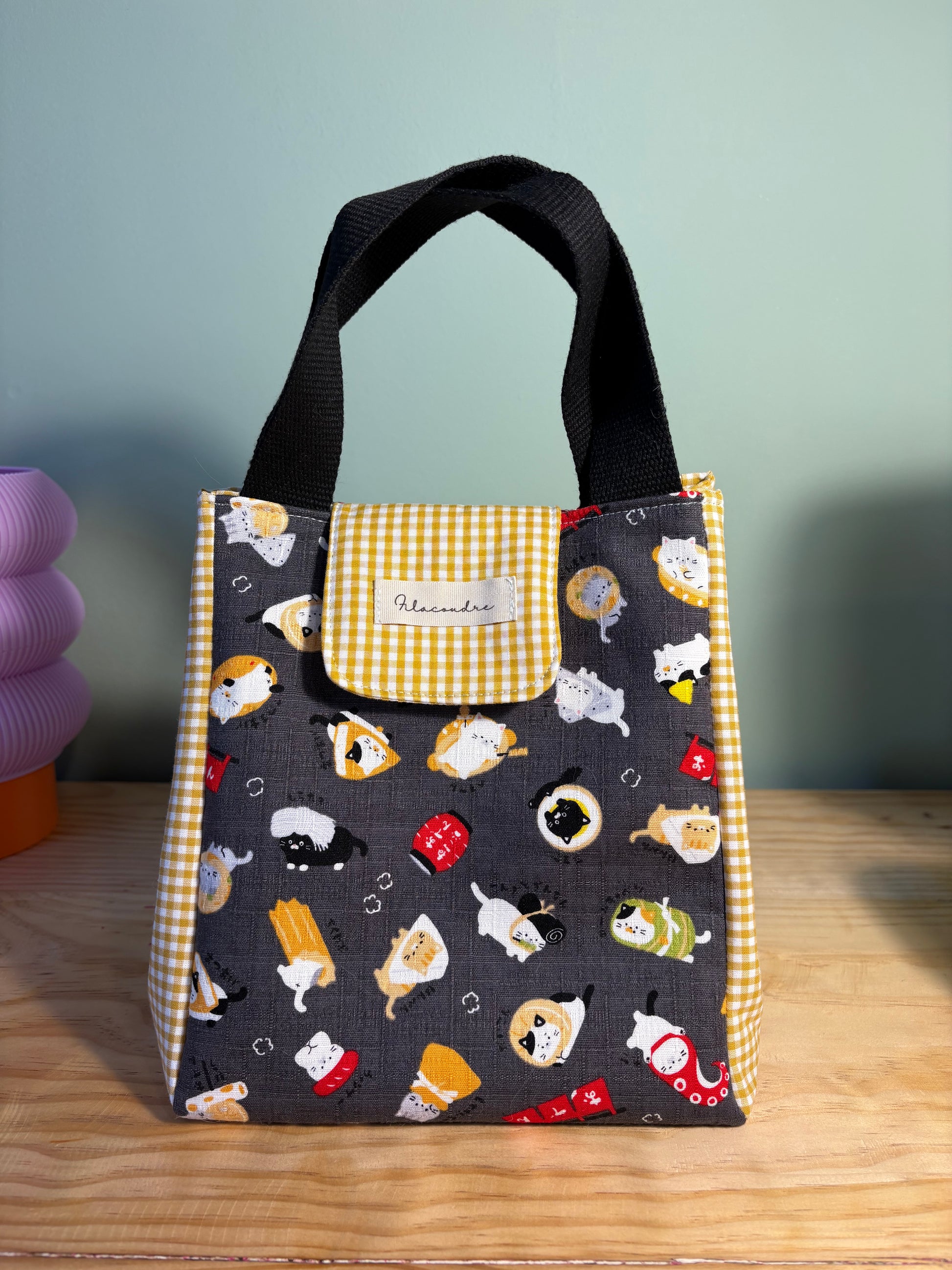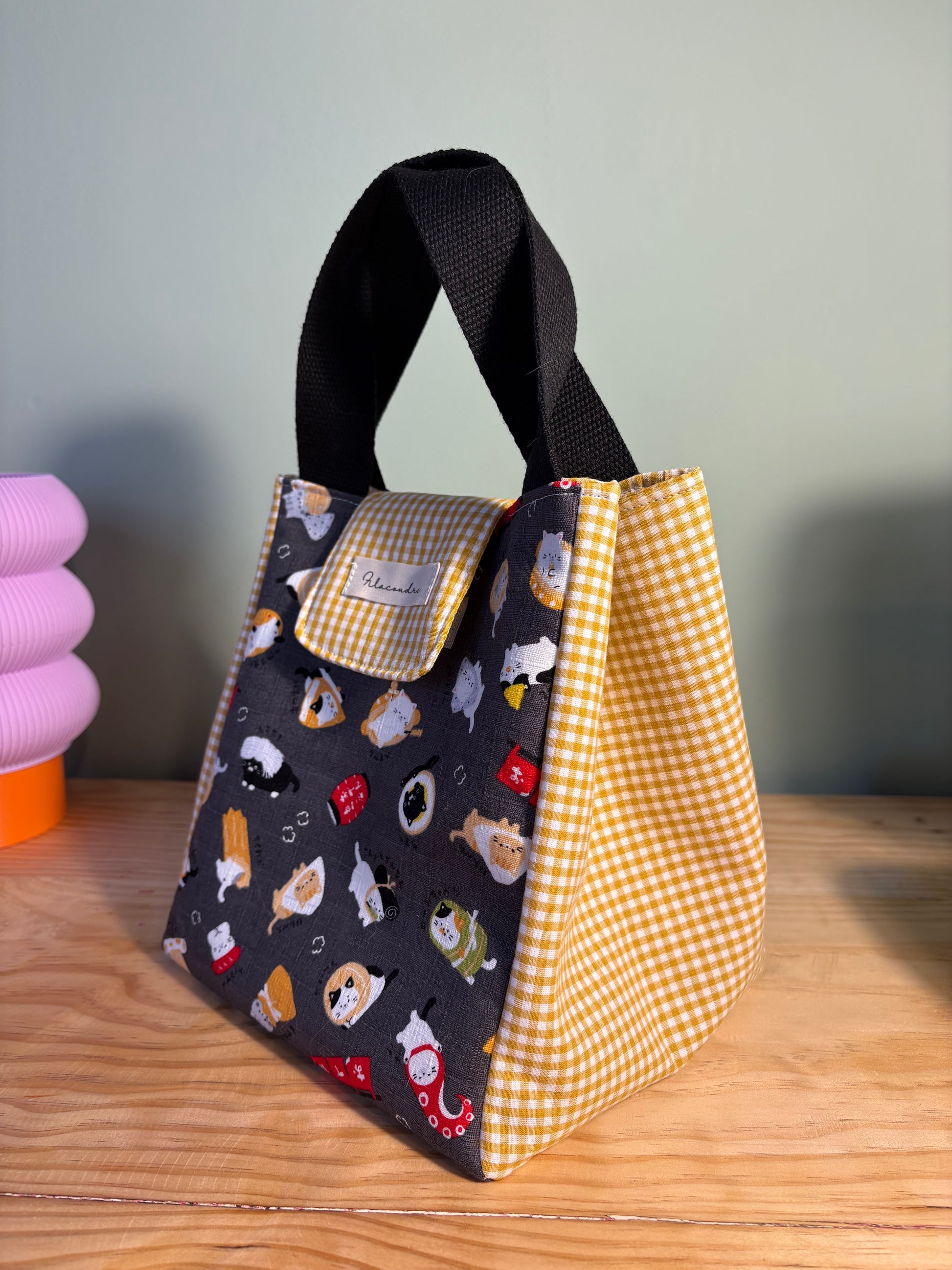 Nuestra lunch bag está hecha a mano con tela de algodón 100% de alta calidad, diseñada y fabricada en Japón, lo que garantiza no solo durabilidad sino también un diseño único y encantador. Es perfecta para acompañarte al trabajo, a clase o en tus salidas diarias.