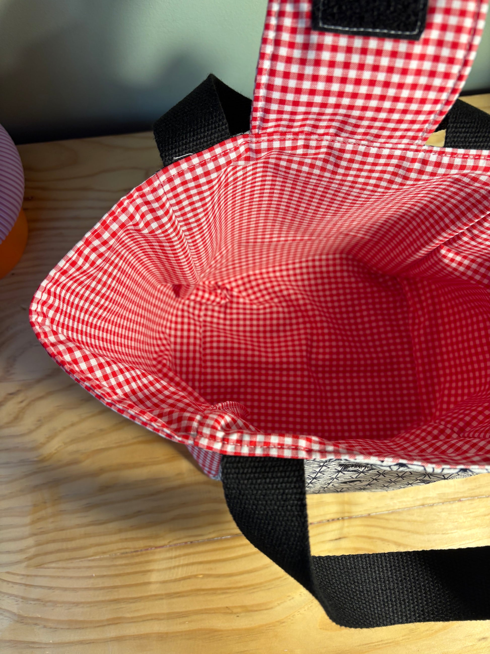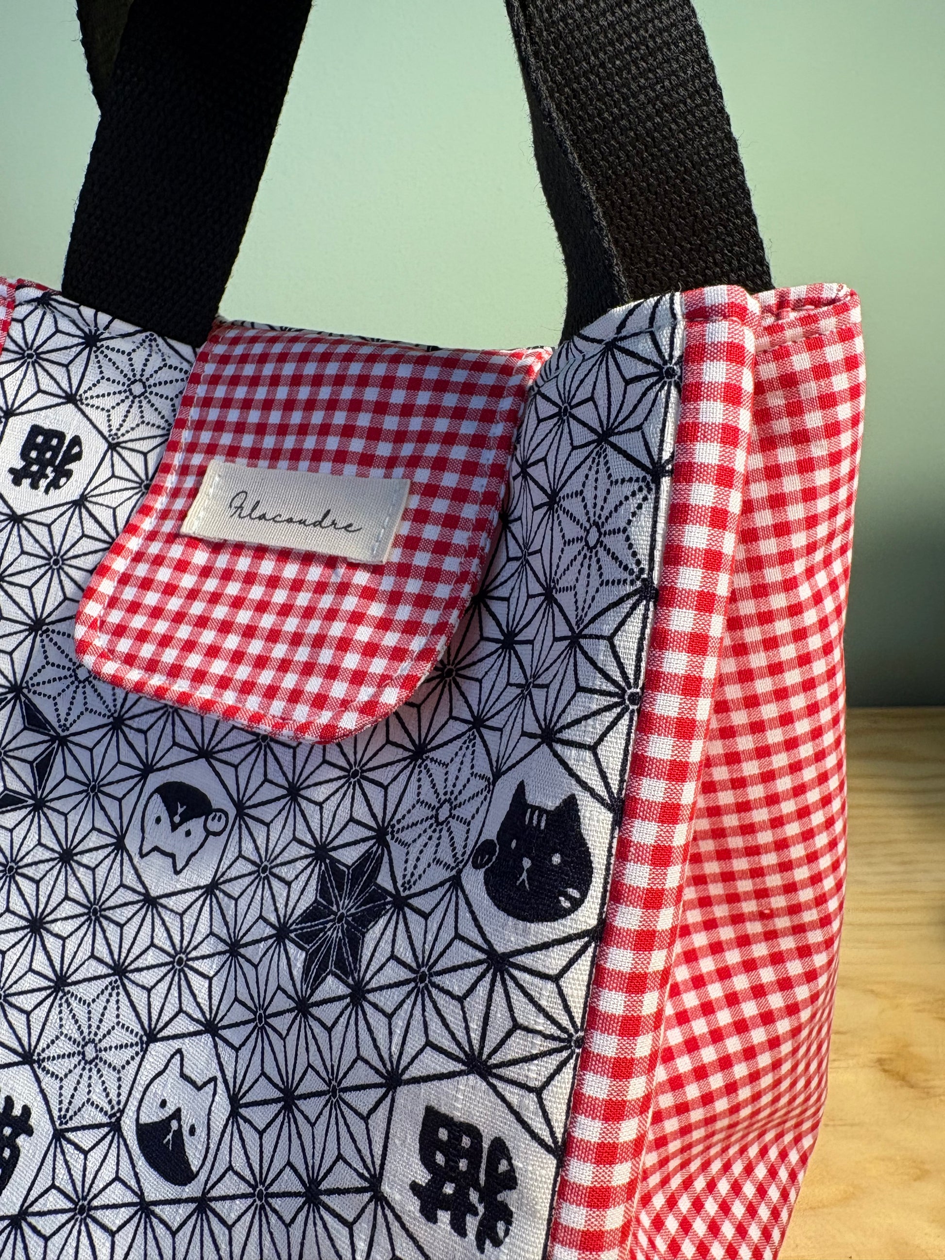Nuestra lunch bag está hecha a mano con tela de algodón 100% de alta calidad, diseñada y fabricada en Japón, lo que garantiza no solo durabilidad sino también un diseño único y encantador. Es perfecta para acompañarte al trabajo, a clase o en tus salidas diarias.