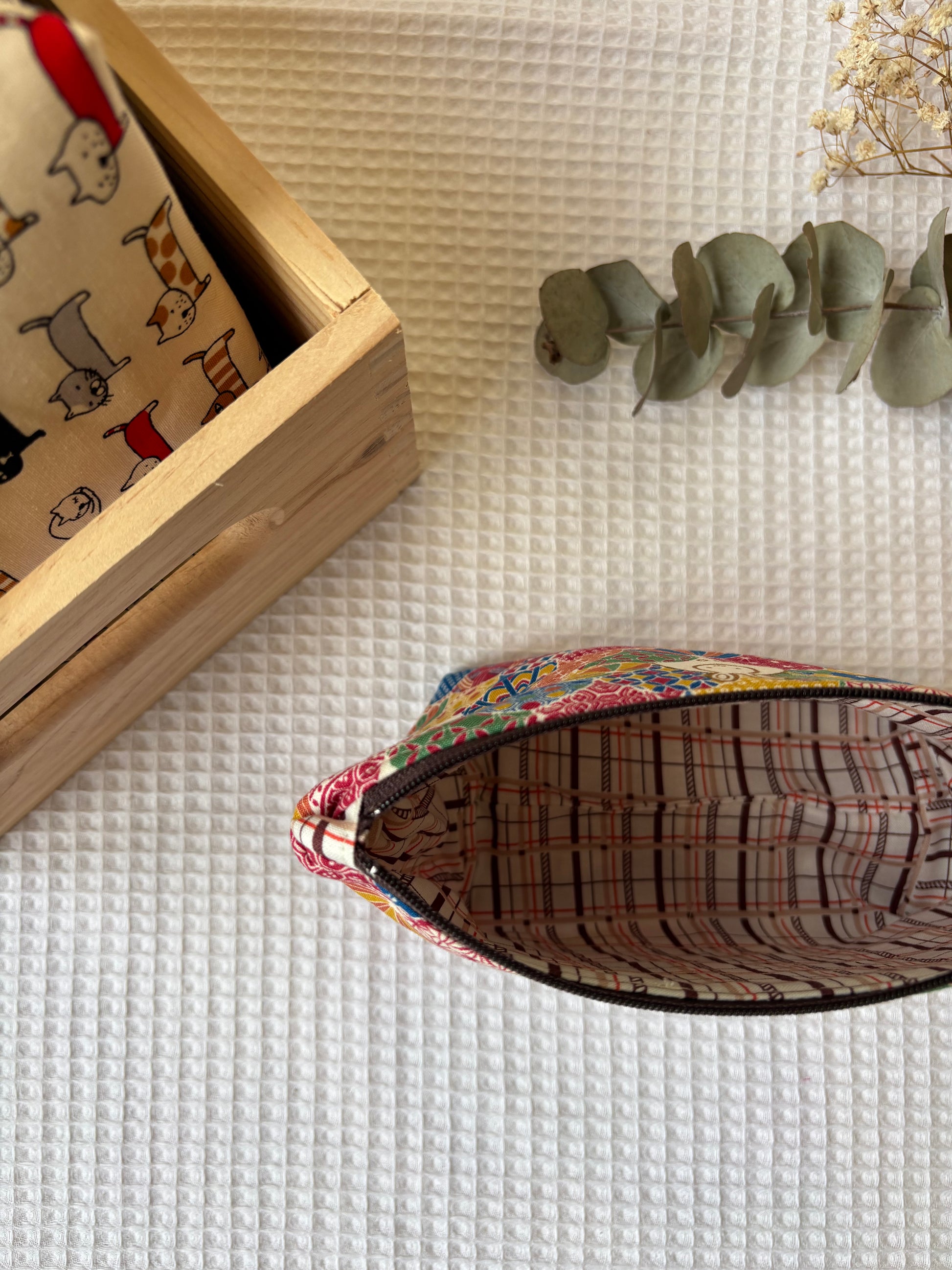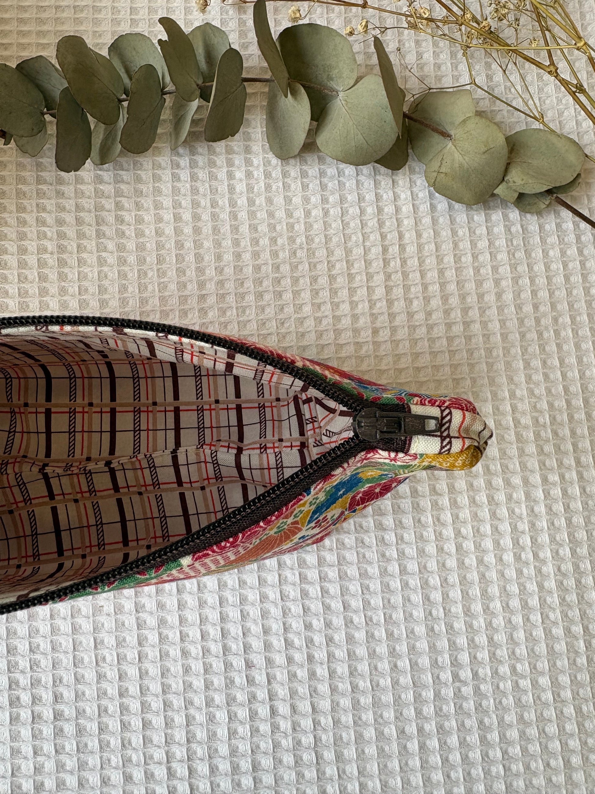 🧵✨ Práctico, versátil y sostenible: nuestro neceser está hecho a mano con mucho mimo, utilizando únicamente algodón. La tela ha sido diseñada y fabricada en Japón 🇯🇵, lo que le da un toque único y de alta calidad.