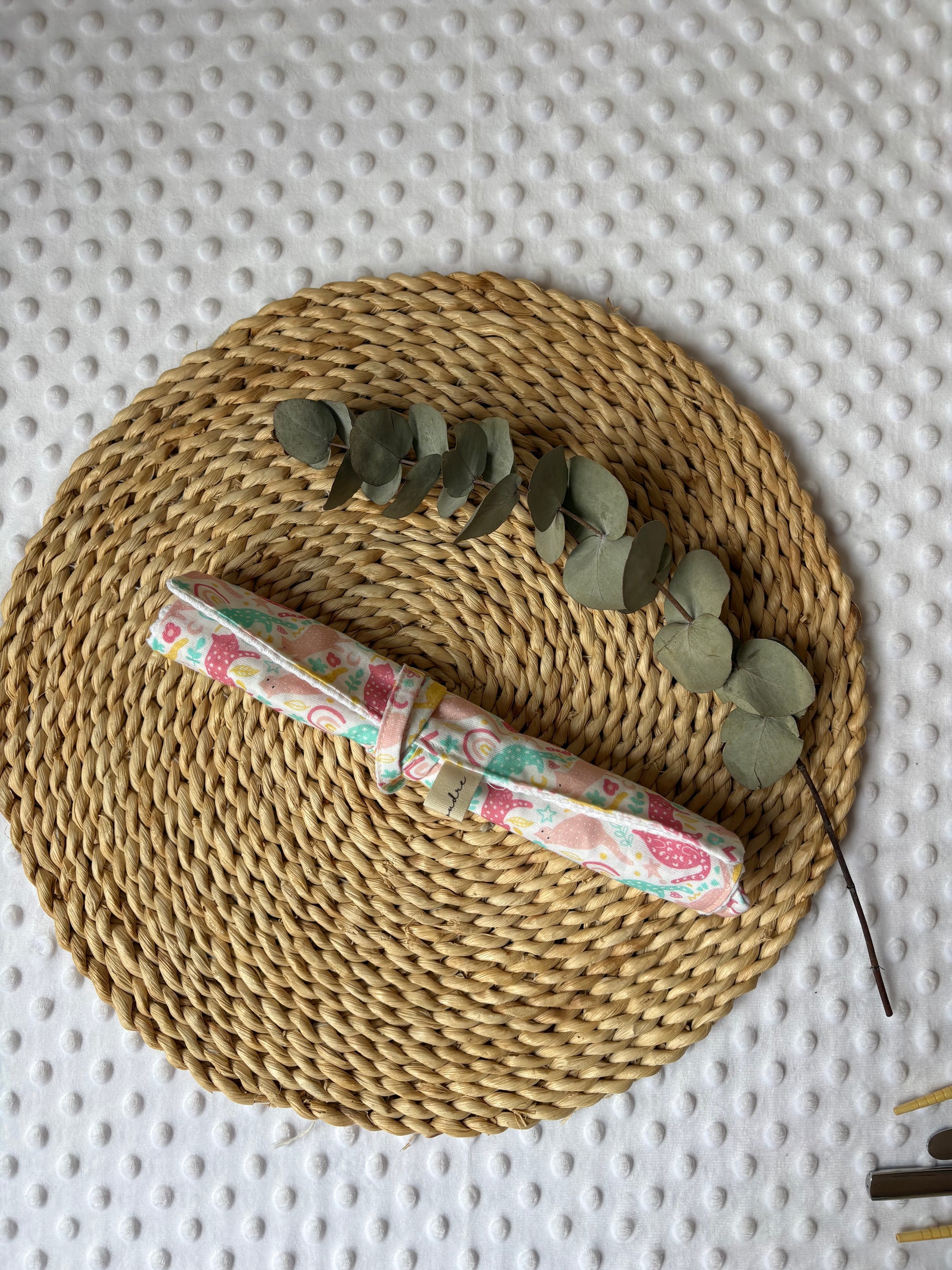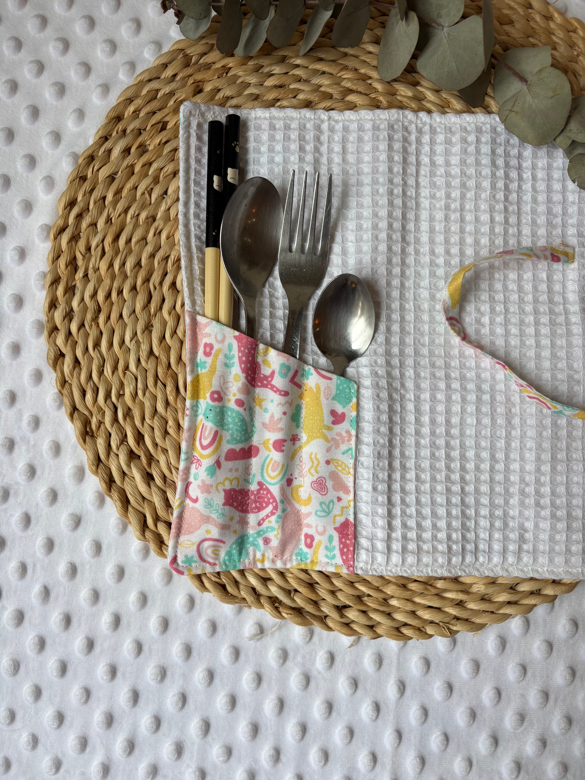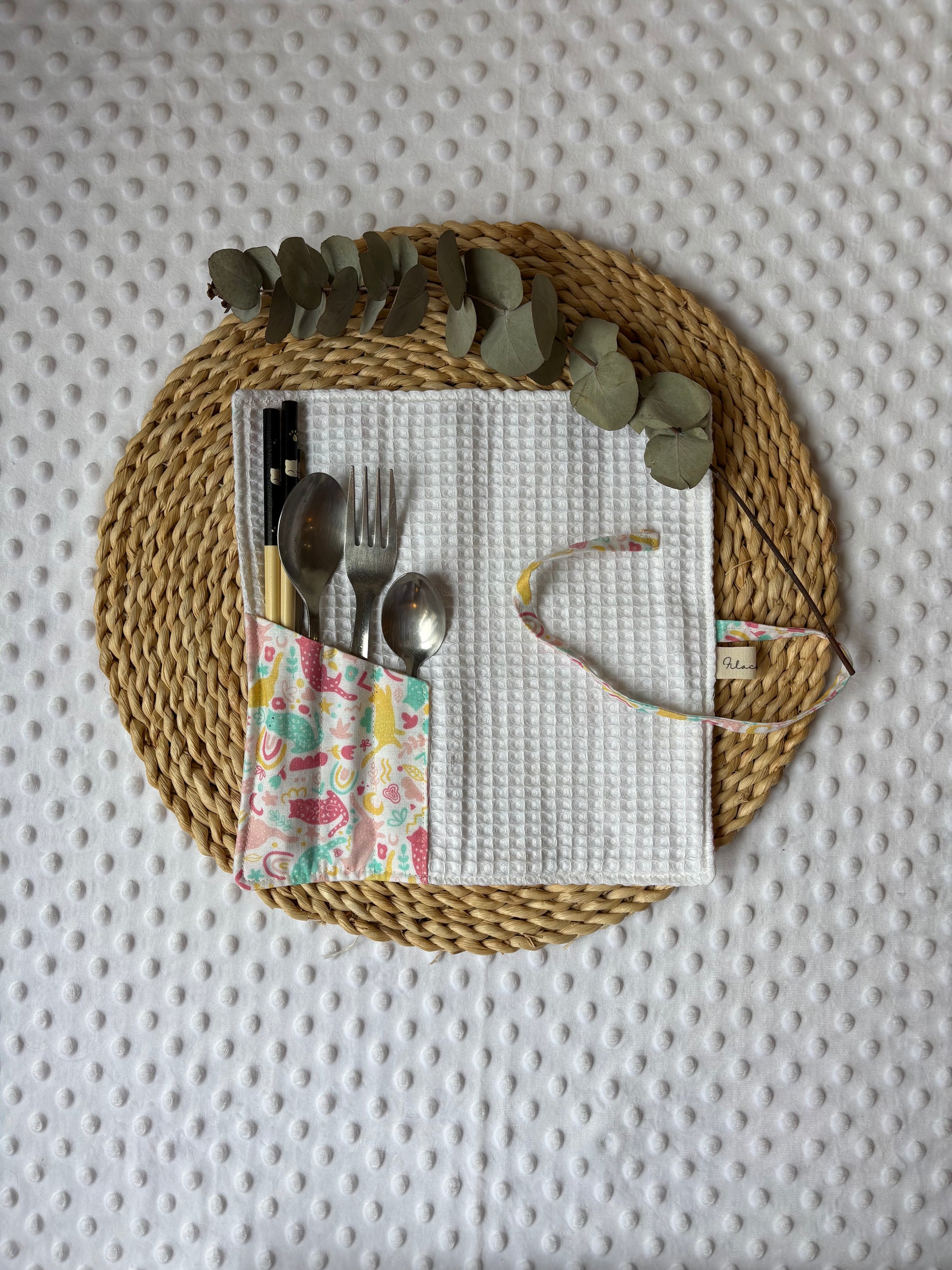 Se despliega como una práctica servilleta y te permite llevar tus cubiertos siempre contigo de forma cómoda y ordenada. ✨