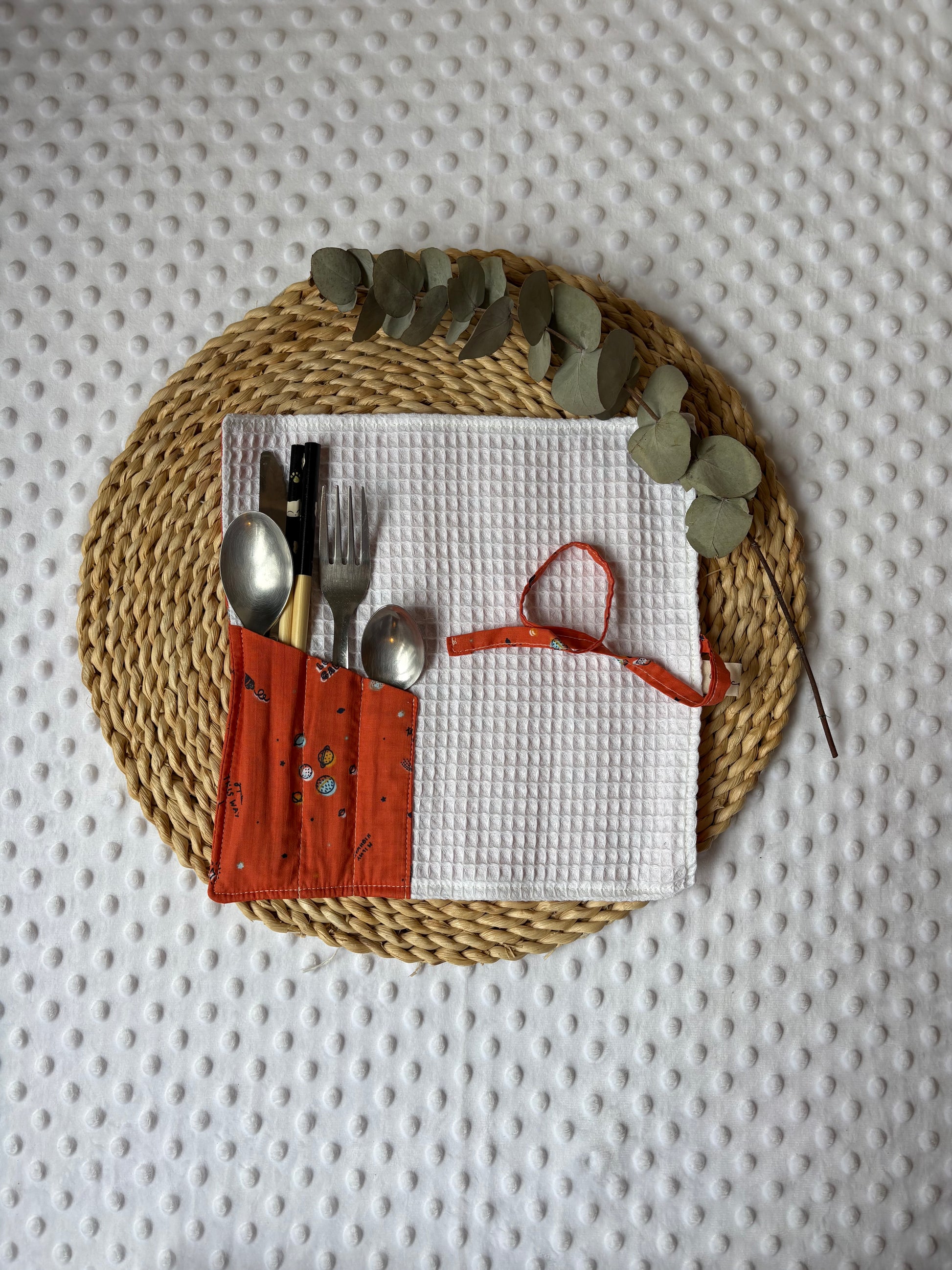 Se despliega como una práctica servilleta y te permite llevar tus cubiertos siempre contigo de forma cómoda y ordenada. ✨